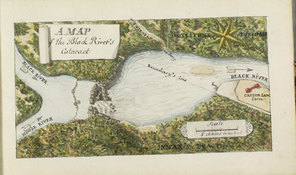 Pierre Pharoux, A Map of the Black River's Cataract, Architectural drawings and maps of Pierre Pharoux, 1795, HM 2028, The Huntington Library, San Marino, California.