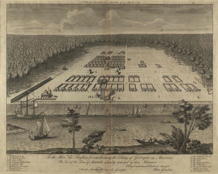 Peter Gordon, "A View of Savanah [sic] as it stood the 29th of March, 1734," 1734. Hargrett Rare Book and Manuscript Library, University of Georgia Libraries, Athens.