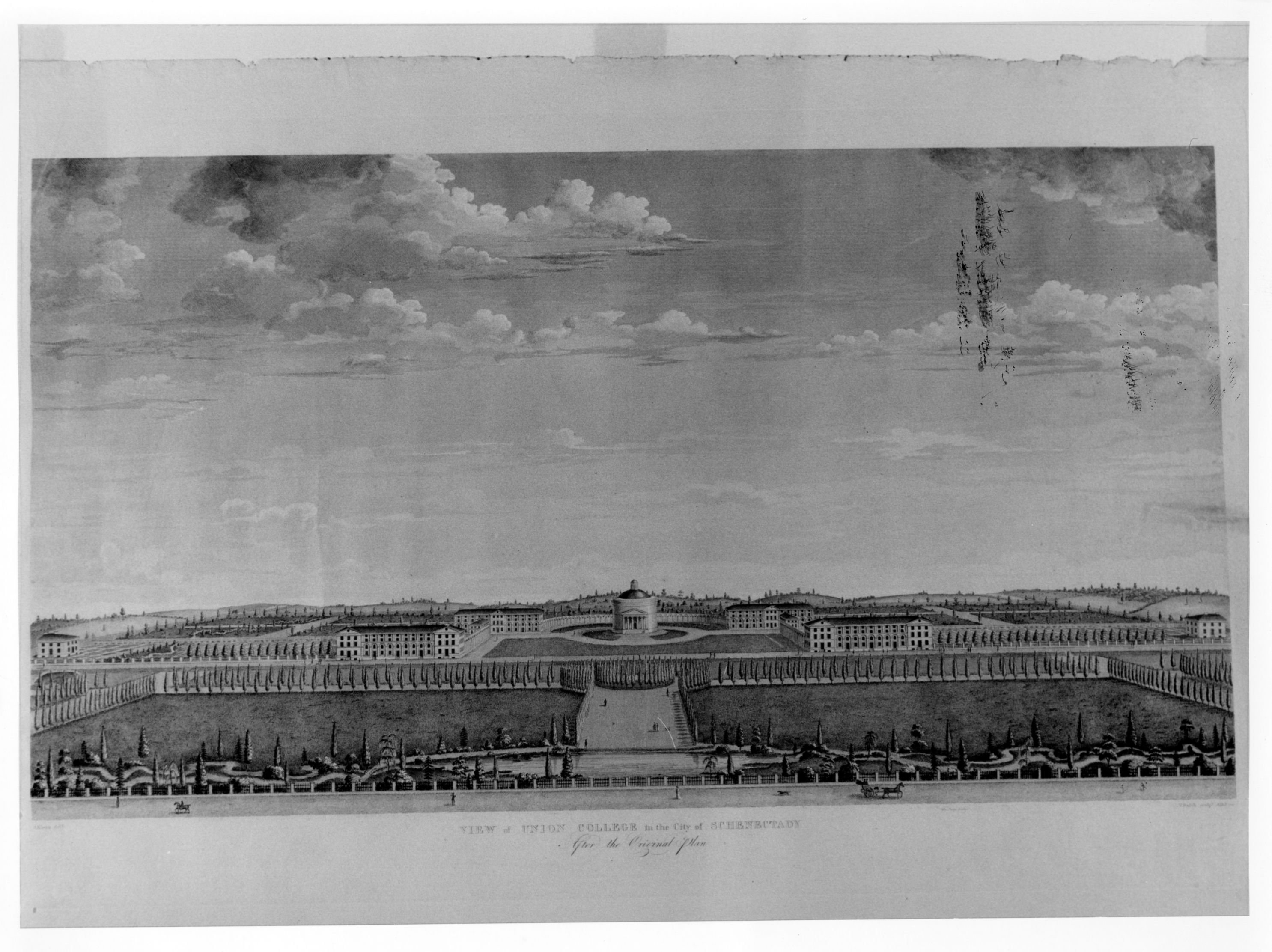 Revision as of 17:03, January 15, 2014 by C-tompkins (talk | contribs) (Joseph Jacques Ramée (artist), J. Klein and V. Balch (engravers), "View of Union College in the City of Schenectady," c.1820. Union College, Schenectady, N.Y.)